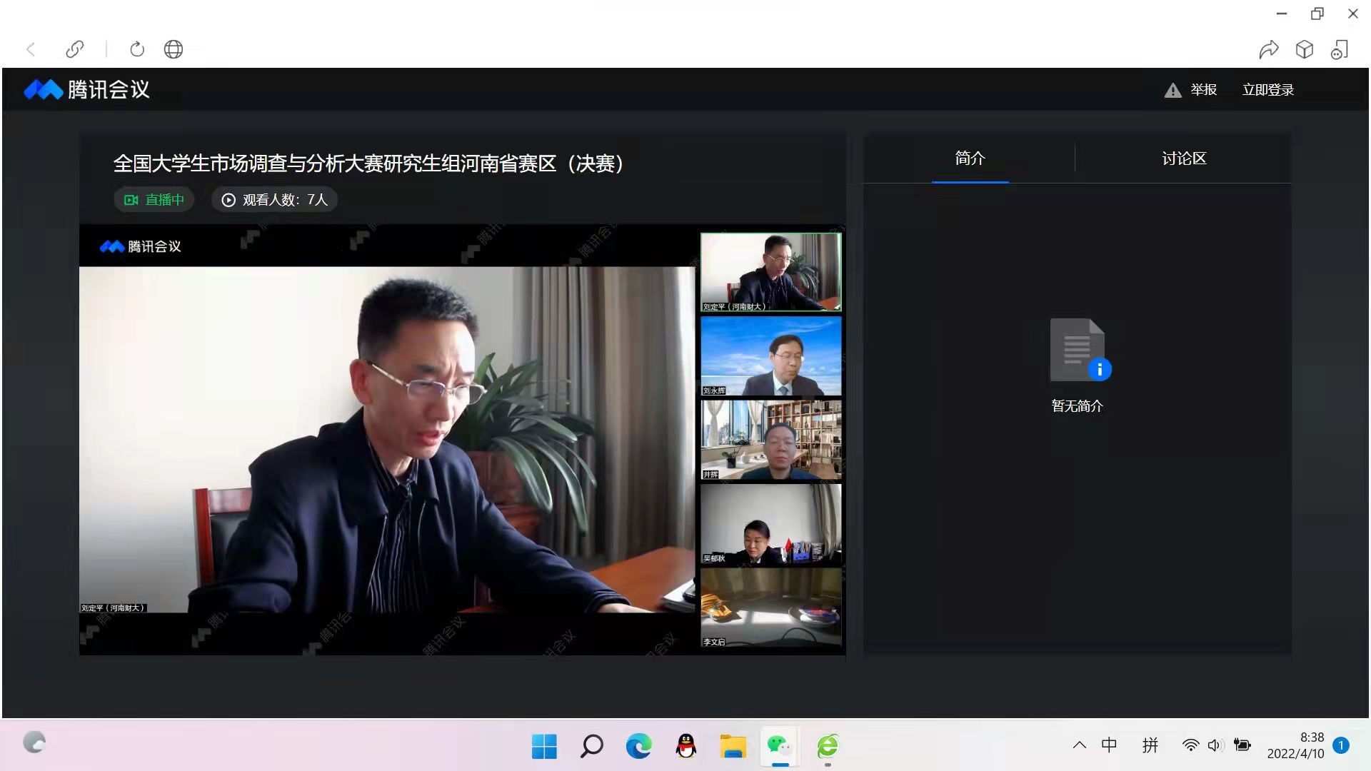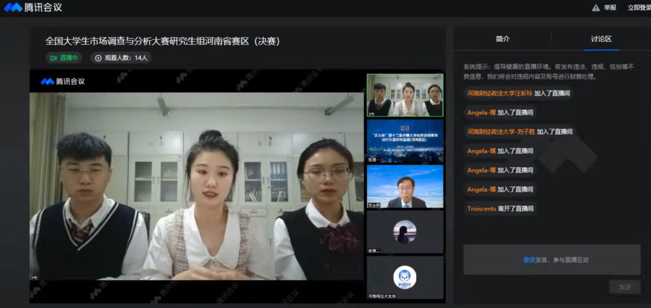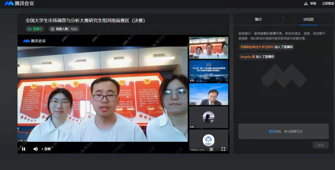 4月10日,市场调查与分析大赛(研究生组)河南省省赛决赛通过网络直播的形式进行。12支决赛队伍经过层层比拼,最终选取6支参赛队伍晋级全国总决赛。