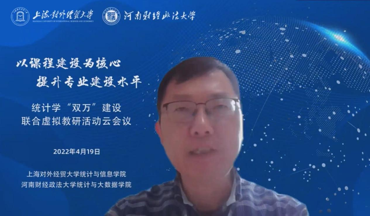 为全面贯彻党的教育方针,落实立德树人根本任务,全面启动一流本科专业建设和一流课程的“双万”计划,全面振兴本科教育,提高高校人才培养能力,实现高等教育内涵式发展。2022年4月19日,由上海对外经贸大学和河南财经政法大学联合举办,以“以课程建设为核心,提升专业建设水平”为主题的2022年虚拟教研研讨会在线成功举办。本次会议也是我院响应学校“能力作风建设年”活动的具体措施之一。